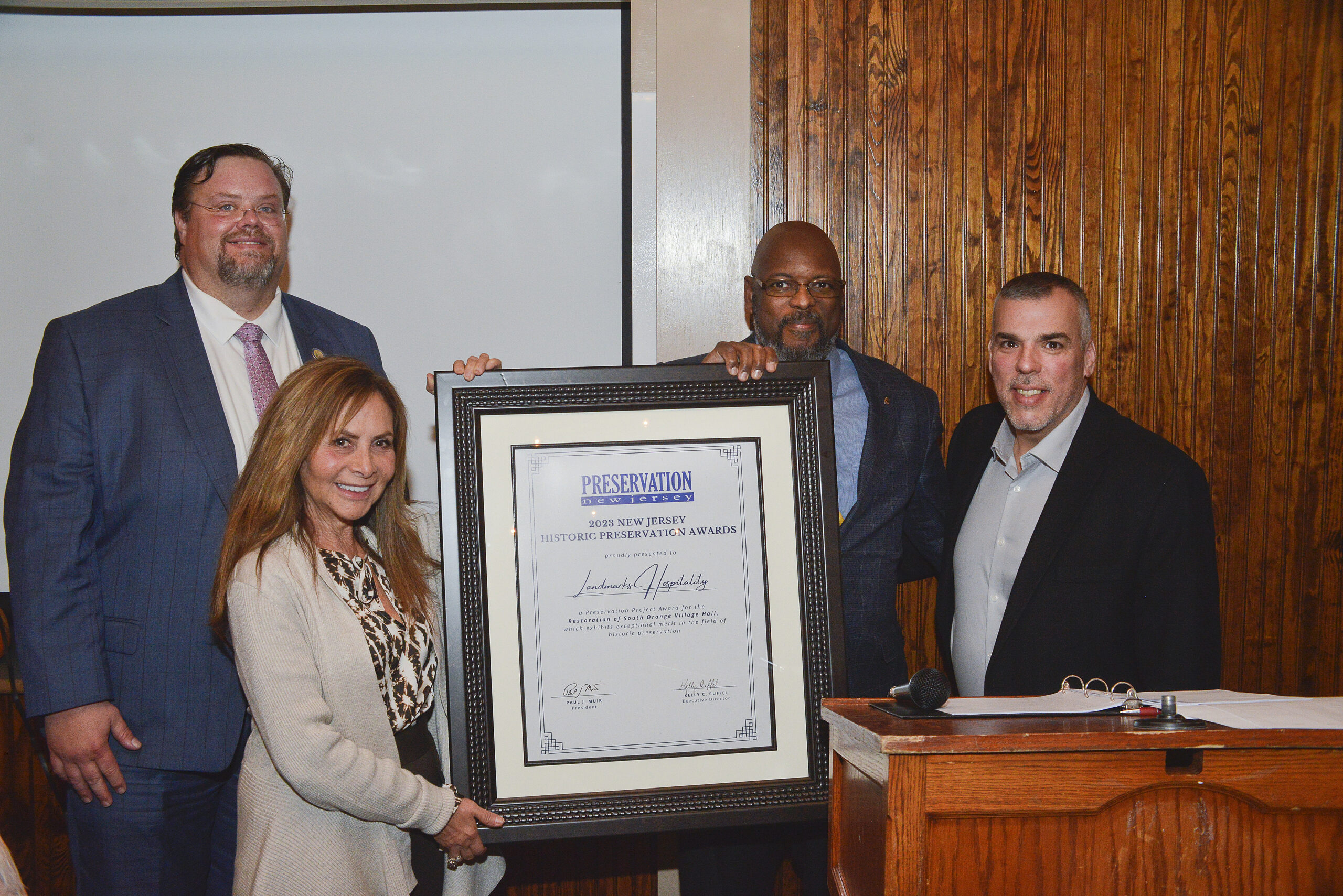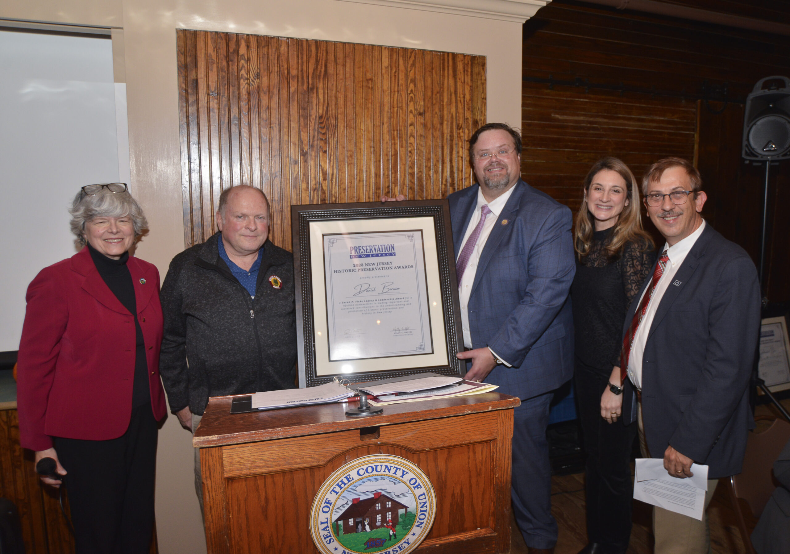 On November 30, 2023, with a sold-out event of 125 guests, Preservation New Jersey (‘PNJ’) hosted its 2023 New Jersey Historic Preservation Awards event at Masker’s Barn in Berkeley Heights, Union County, New Jersey. The event honored 14 awardees for excellence in preservation.