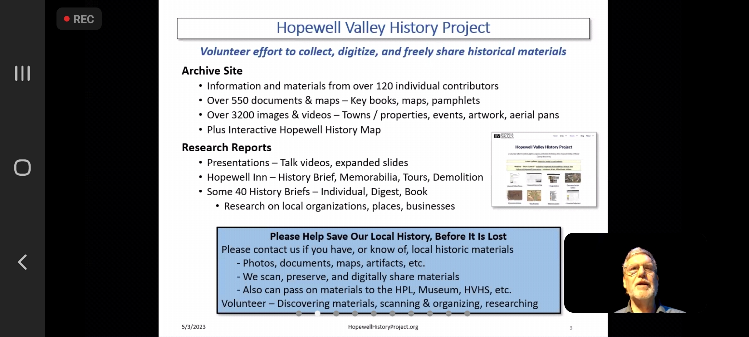The call for old pictures, maps and images, documents, and local family or business memorabilia remains open as the archiving project continues. To date the History Project has amassed over 500 documents and maps, over 3,000 images and videos and many other materials online. With a tremendous amount of information collected and digitally scanned, research reports (a series titled History Briefs) are being produced by the Hopewell Valley Historical Society.
